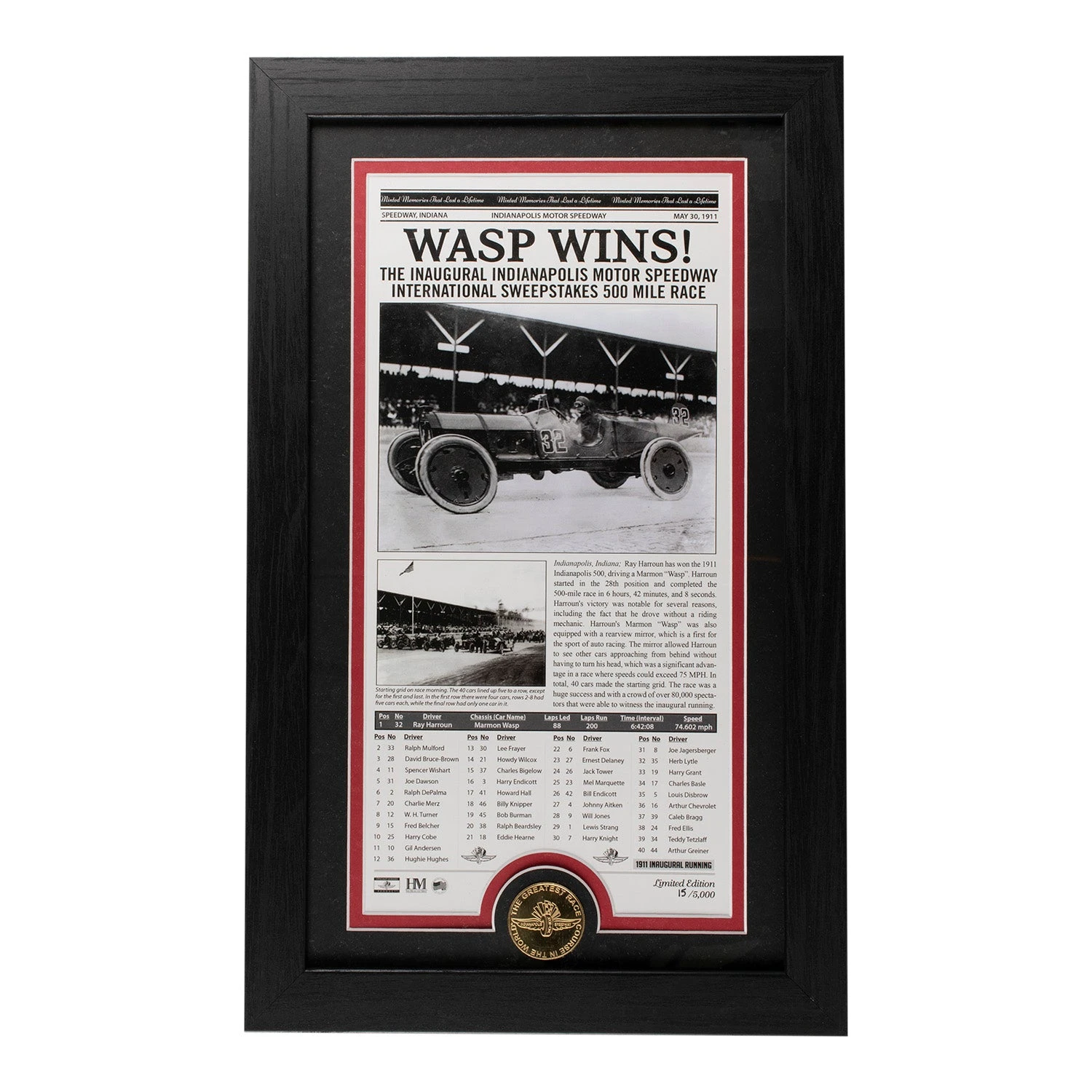 This replica of what the front page of the newspaper for the first win may have looked like would make a great addition to any race fans sports room or even work space!