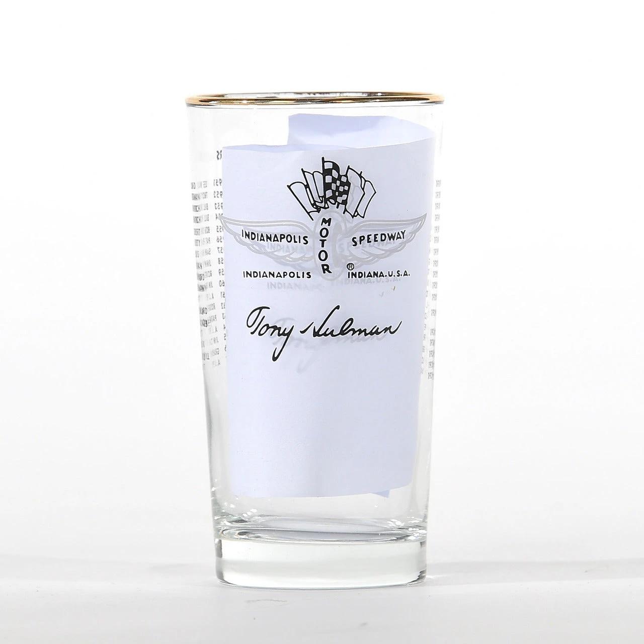 In 1950, Tony Hulman commissioned a set of glassware that would feature all of the Indy 500 winners to date. He and his family continued this annual tradition for over 60 years. 1967 AJ Foyt Set includes a set of 6 glasses Rimmed in 24k gold, made in the USA, and includes the original box. Only 100 Sets Available.