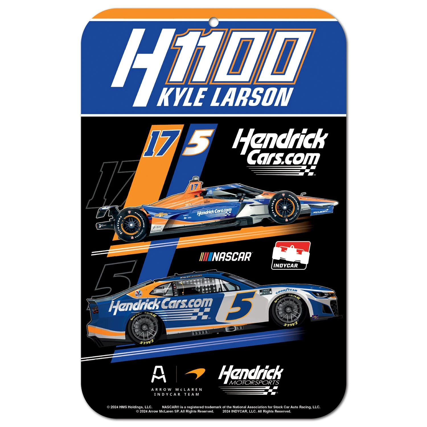 Kyle Larson will become the fifth driver to race the Indy 500-Coca Cola 600 doubleheader, joining Arrow McLaren Racing for the 2024 Indianapolis 500. Larson’s Chevy for the Indy 500 will be co-owned by NASCAR Hall of Famer Rick Hendrick, who will make his INDYCAR team owner debut after 40 years of fielding cars in the NASCAR Cup Series. Share in a part of history with this commemorative Hendrick1100 11×17 plastic sign, featuring Kyle’s matching INDYCAR and NASCAR liveries.