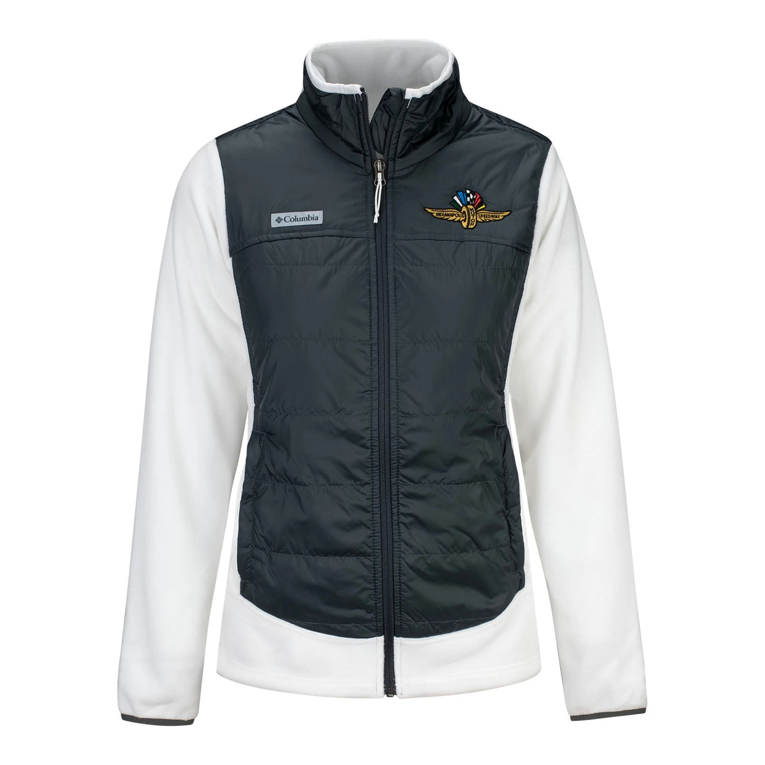 Stay Warm and support the Racing Capital of the World in this Wing Wheel Flag Columbia Ladies Basin Butte Full Zip!