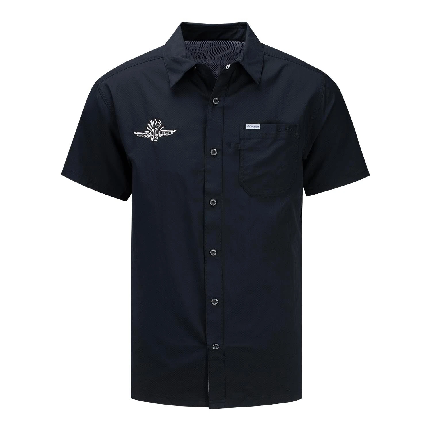 Whether out fishing or at the track, this Wing Wheel Flag Columbia Slack Tide Short Sleeve Shirt keeps you comfortable while supporting the Racing Capital of the World!