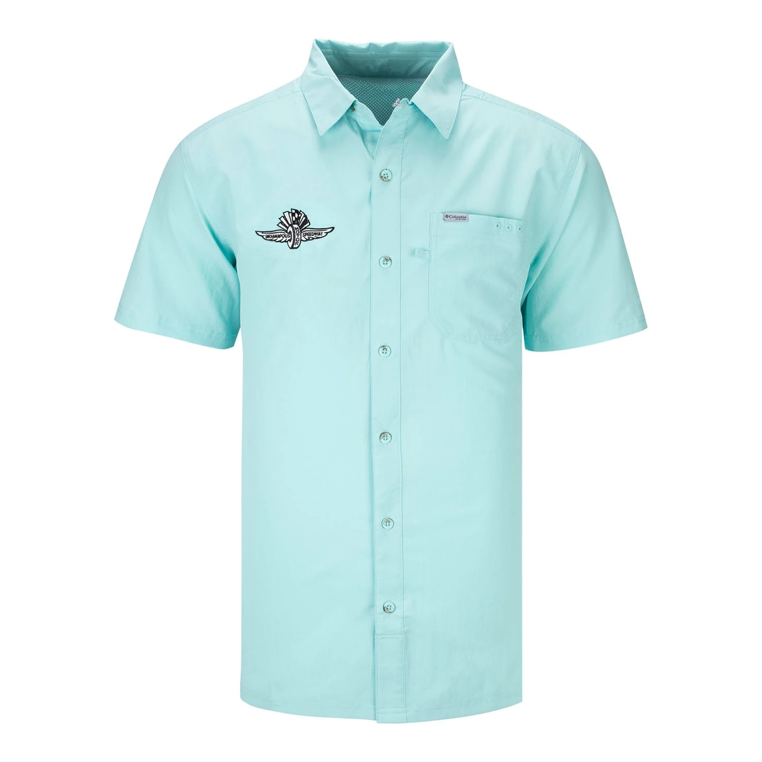 Whether out fishing or at the track, this Wing Wheel Flag Columbia Slack Tide Short Sleeve Shirt keeps you comfortable while supporting the Racing Capital of the World!