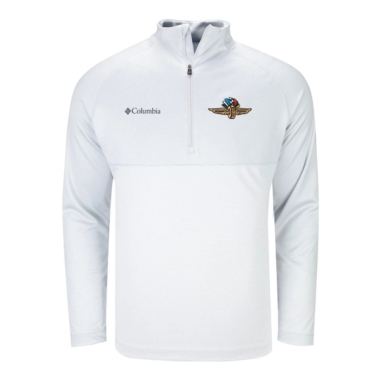 Whether you’re on the course, in the office, or at the track you can support the Racing Capital of the World in this Wing Wheel Flag Columbia Rockin’ It 1/4 Zip!