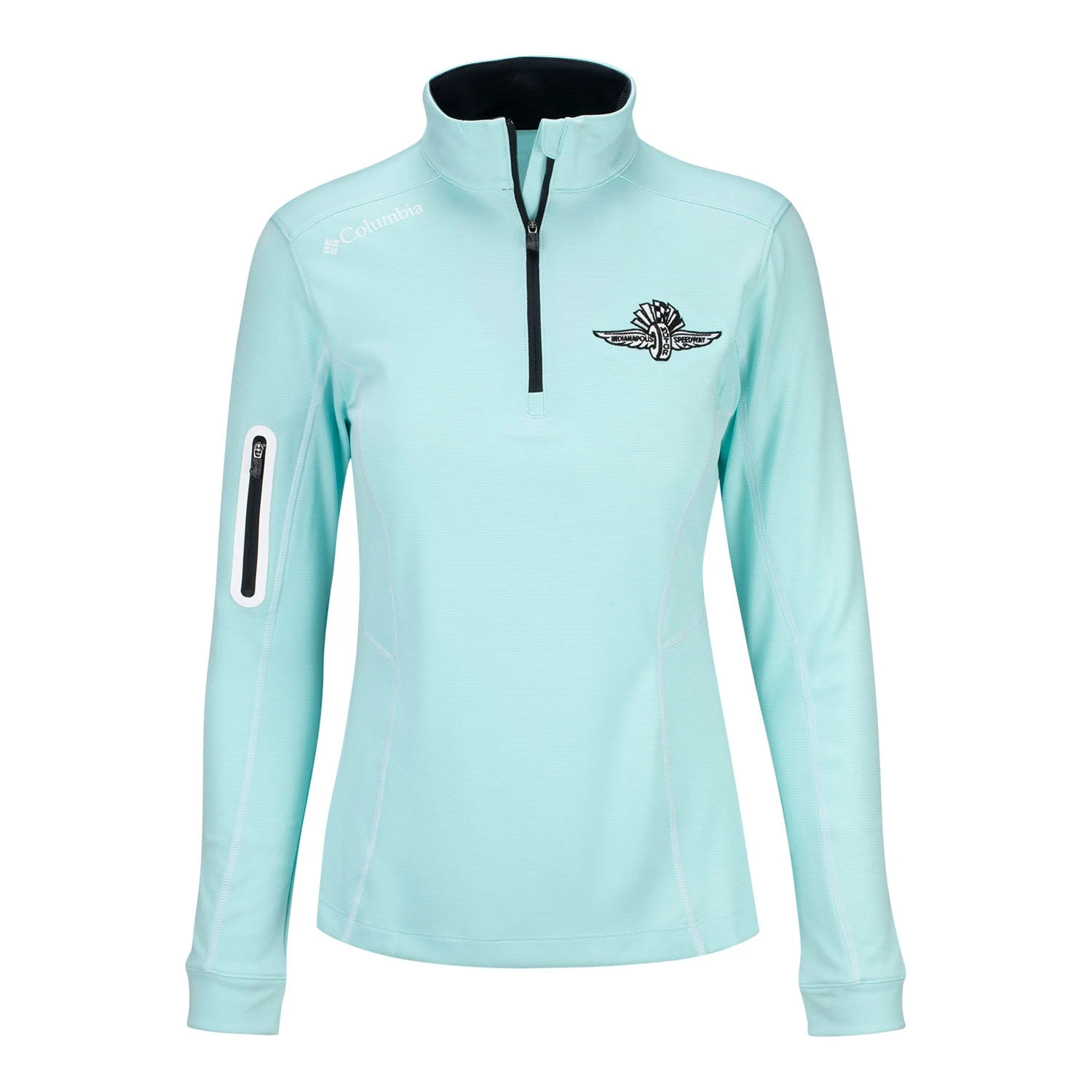 Stay Warm and support the Racing Capital of the World in this Wing Wheel Flag Columbia Ladies Shotgun Quarter Zip!