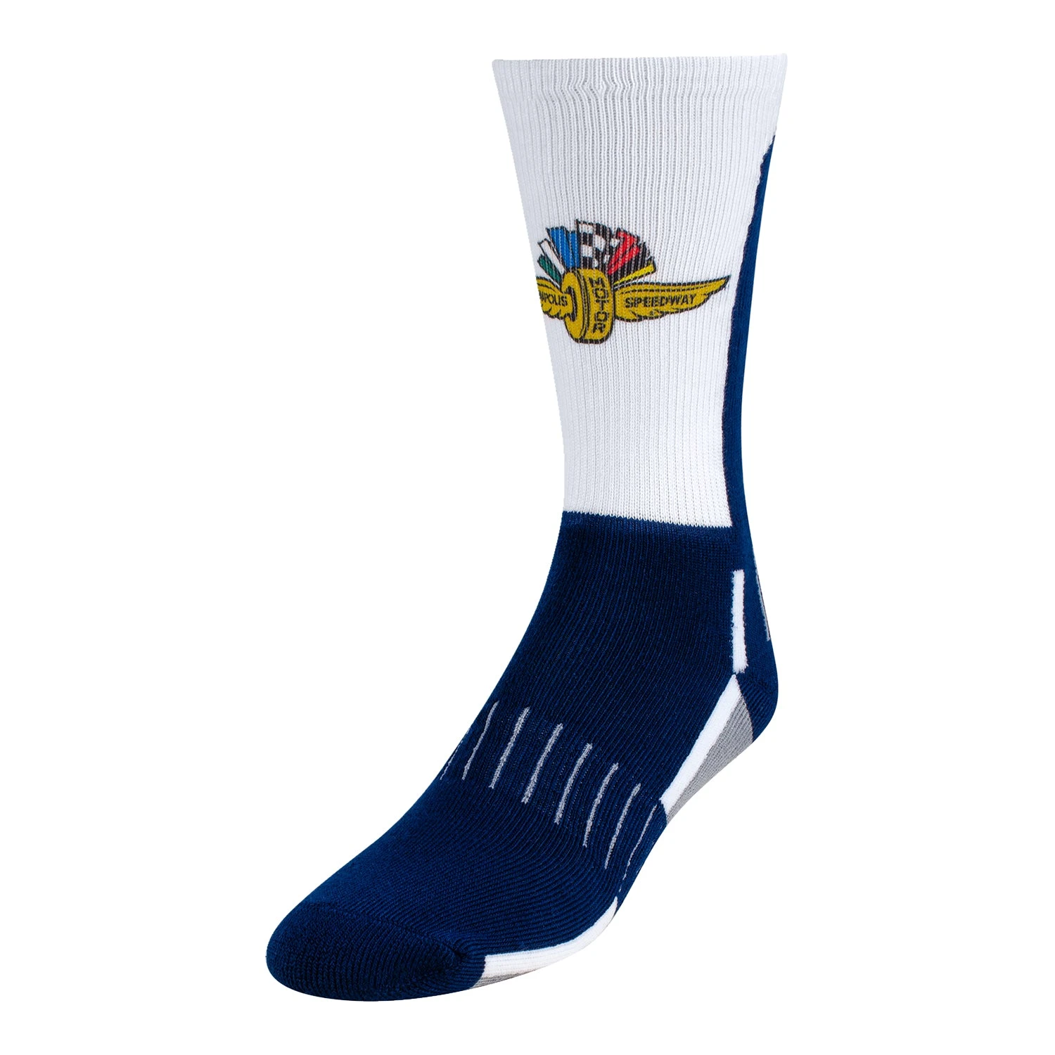 Complete you race day outfit with these Wing Wheel Flag crew socks!