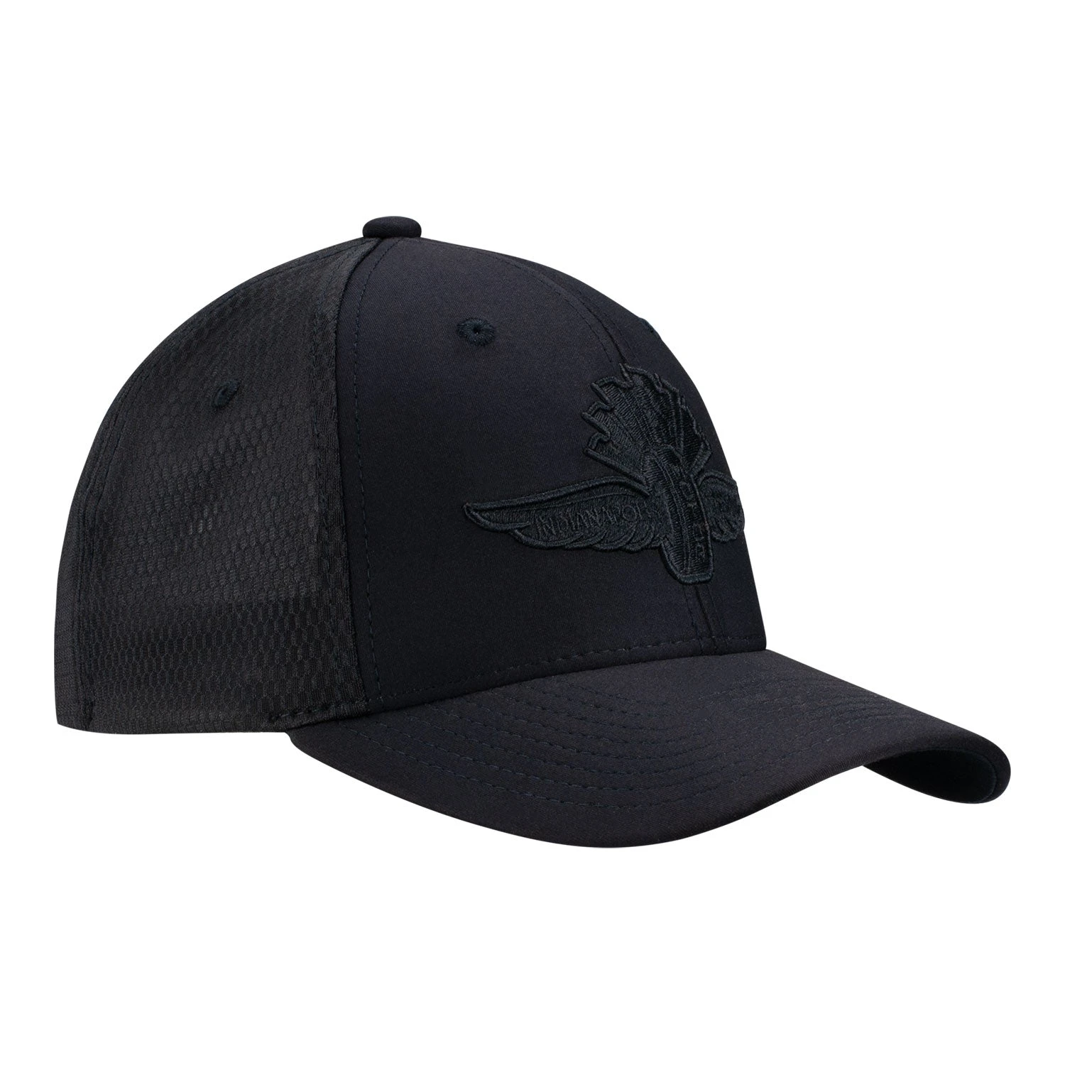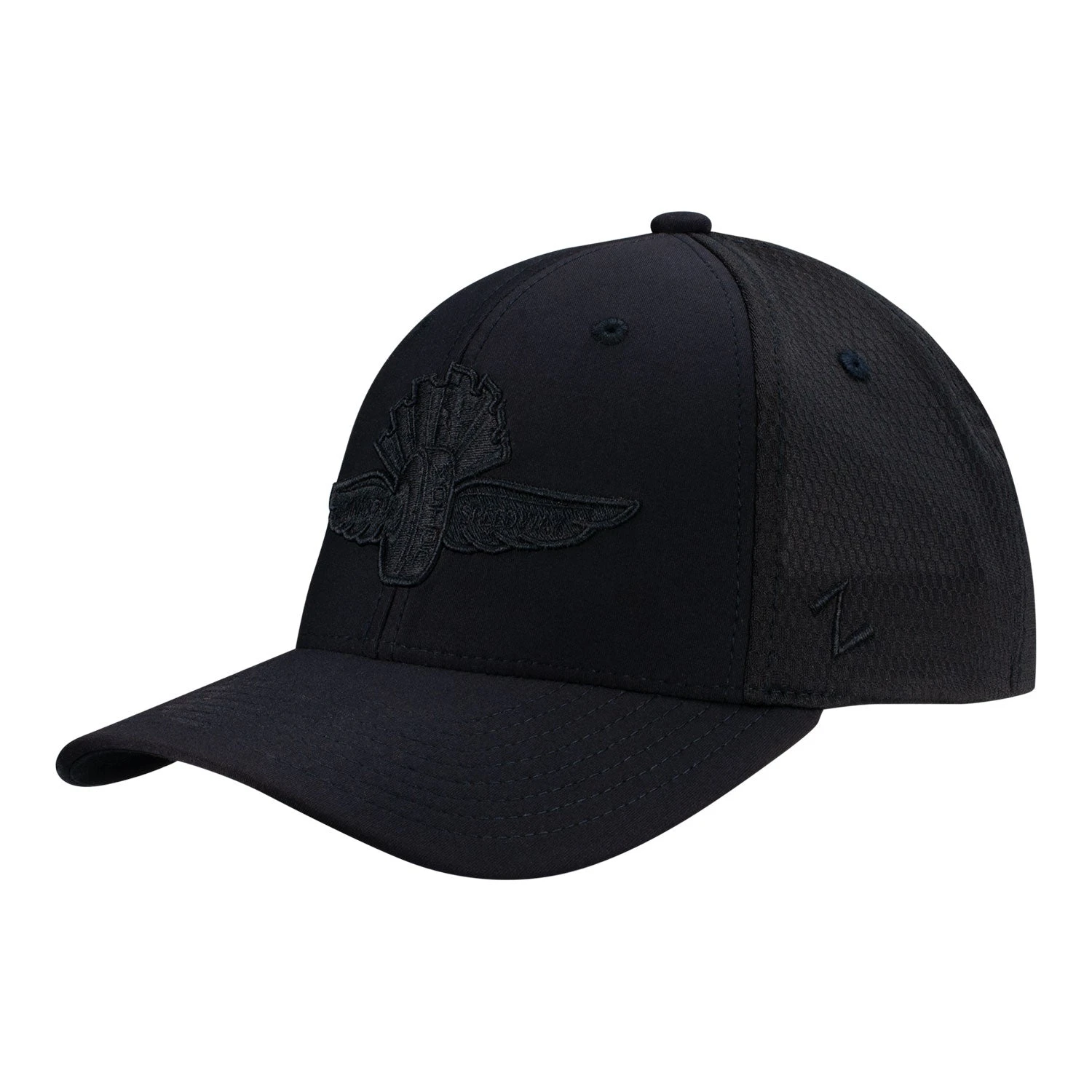 Be the talk of the group with this sleek black on black Wing Wheel Flag Logo Hat!