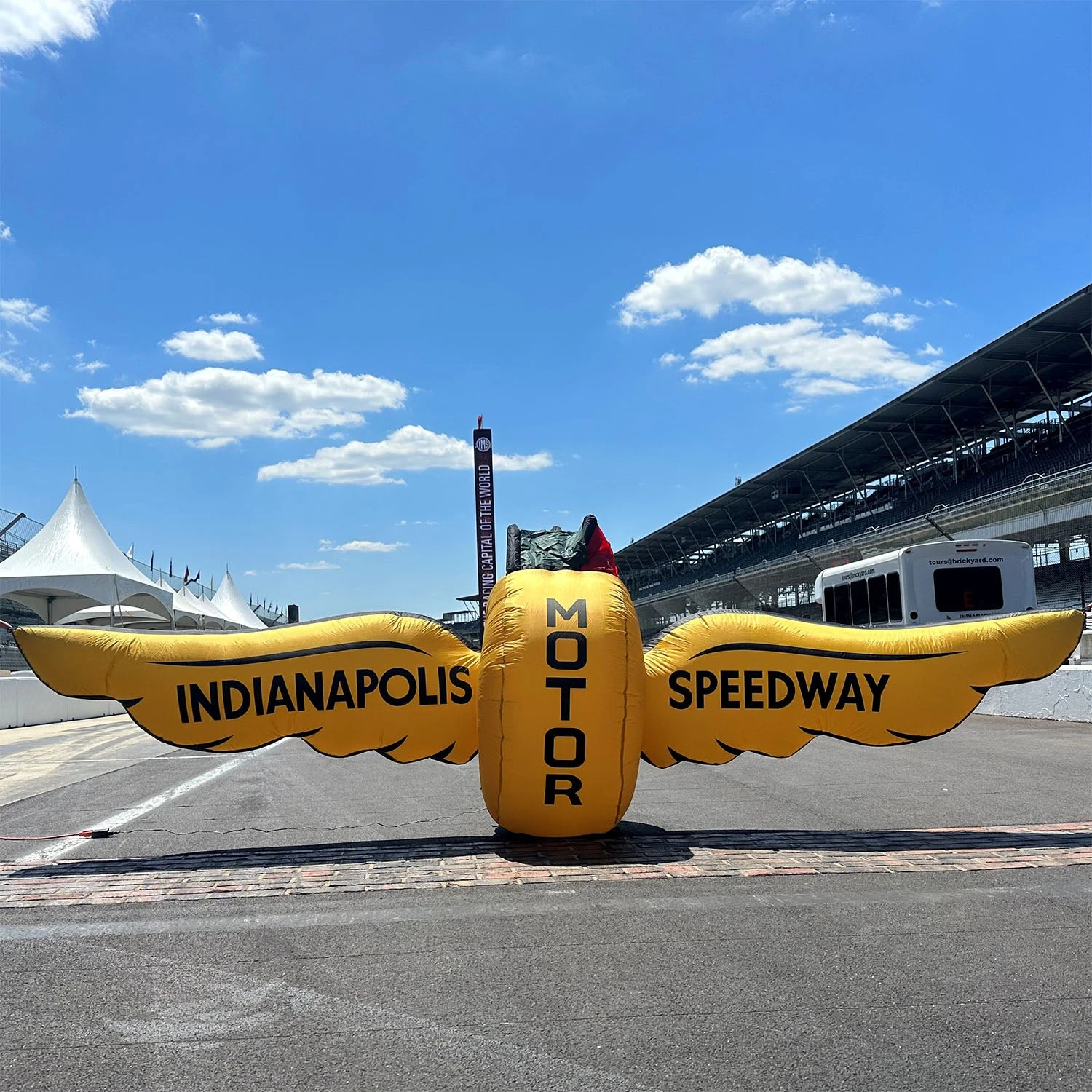 Show everyone how much you love the iconic track and proudly display this inflatable Wing Wheel Flag Logo in your yard or when tailgating!