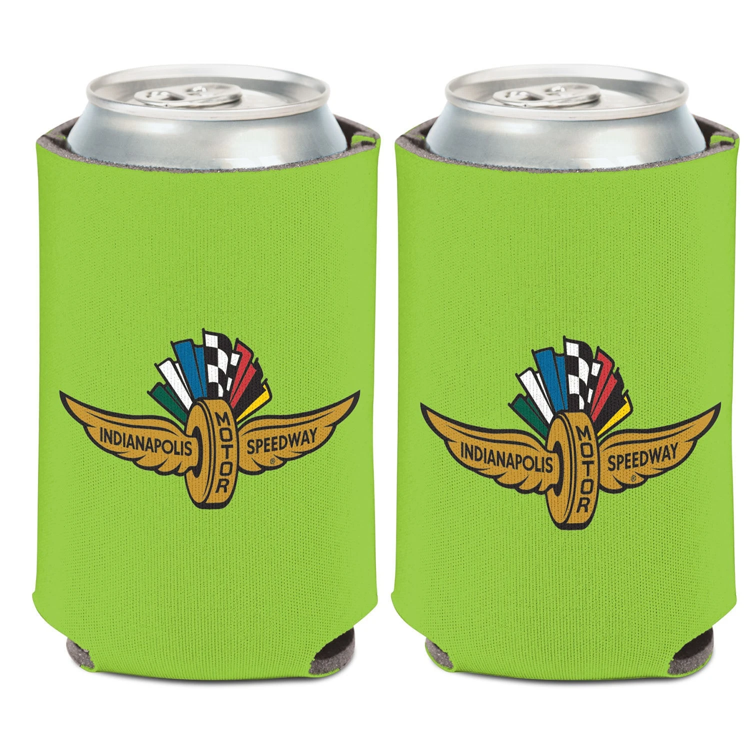 Wing Wheel Flag Neon Green Can Cooler 12oz