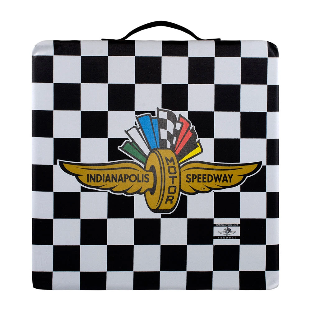 Watch the race in comfort with the Indianapolis Motor Speedway Stadium Seat Cushion. This lightweight, portable cushion features the Indianapolis Motor Speedway Wing/Wheel/Flag logo graphics against a black and white checkered flag pattern on the top. With its soft padding, you may never want to get up. Support the track and your favorite drivers in comfort on race day.