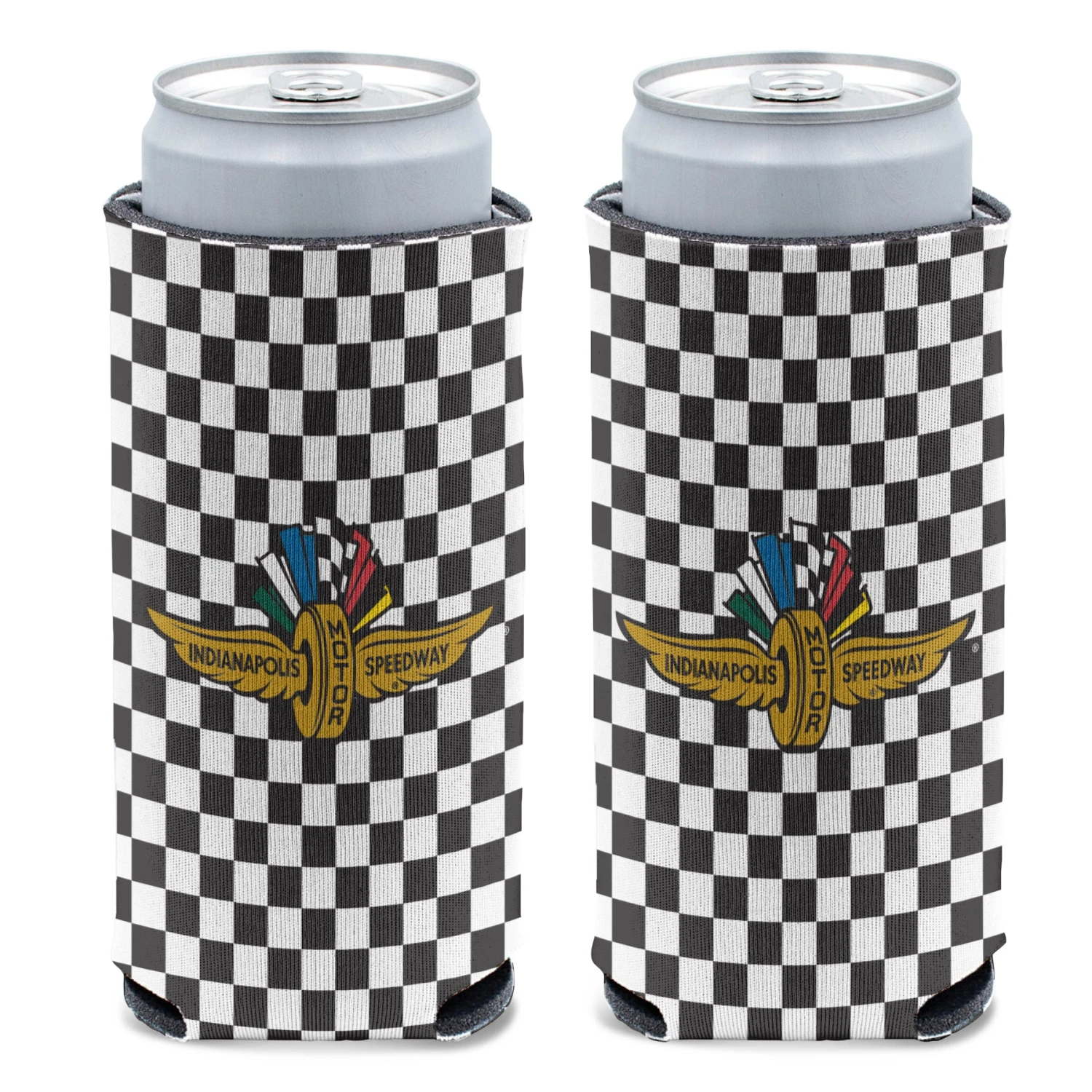 Keep your drink cold with this collapsible Wing Wheel Flag Slim Checkered Can Cooler!