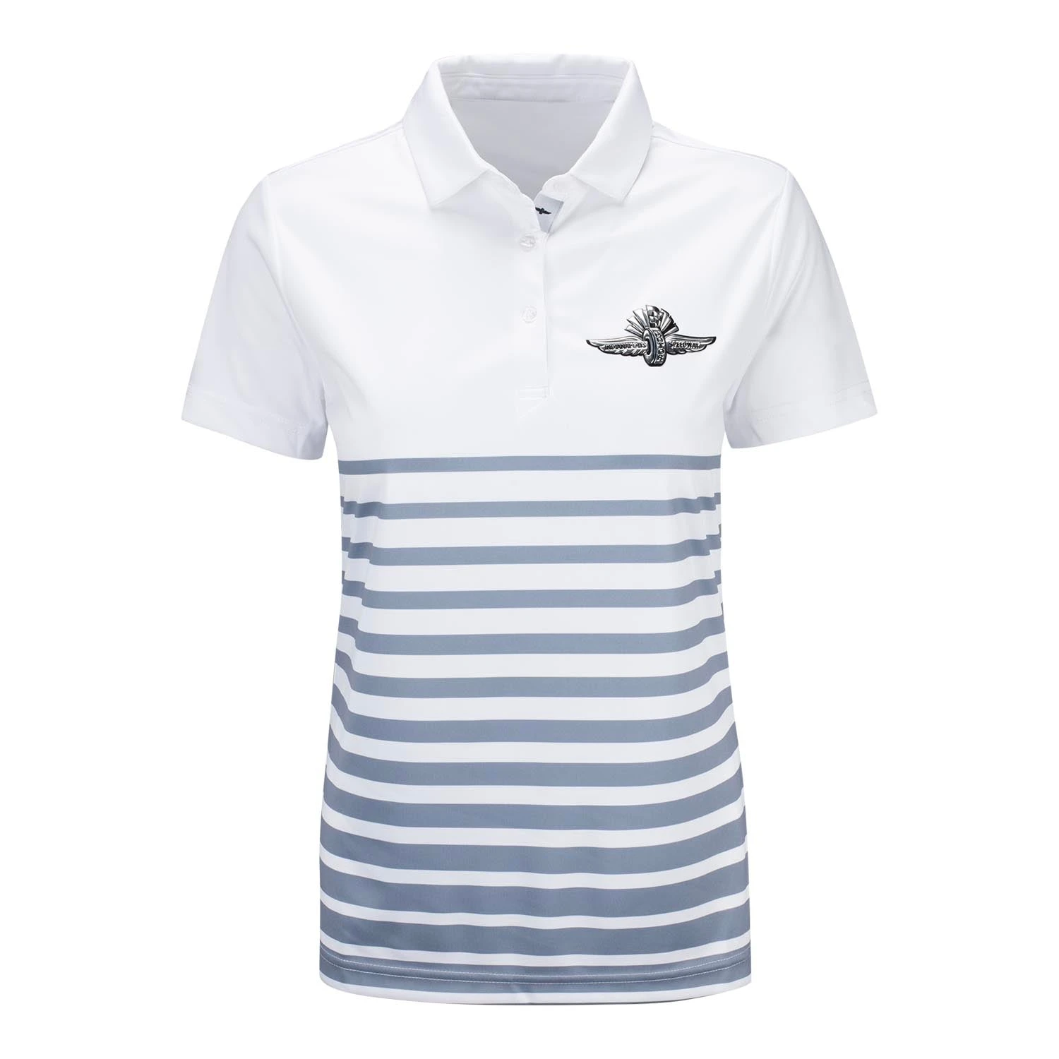 Show your support for the Racing Capital of the World in this Ladies Wing Wheel Flag Tone Striped Polo!